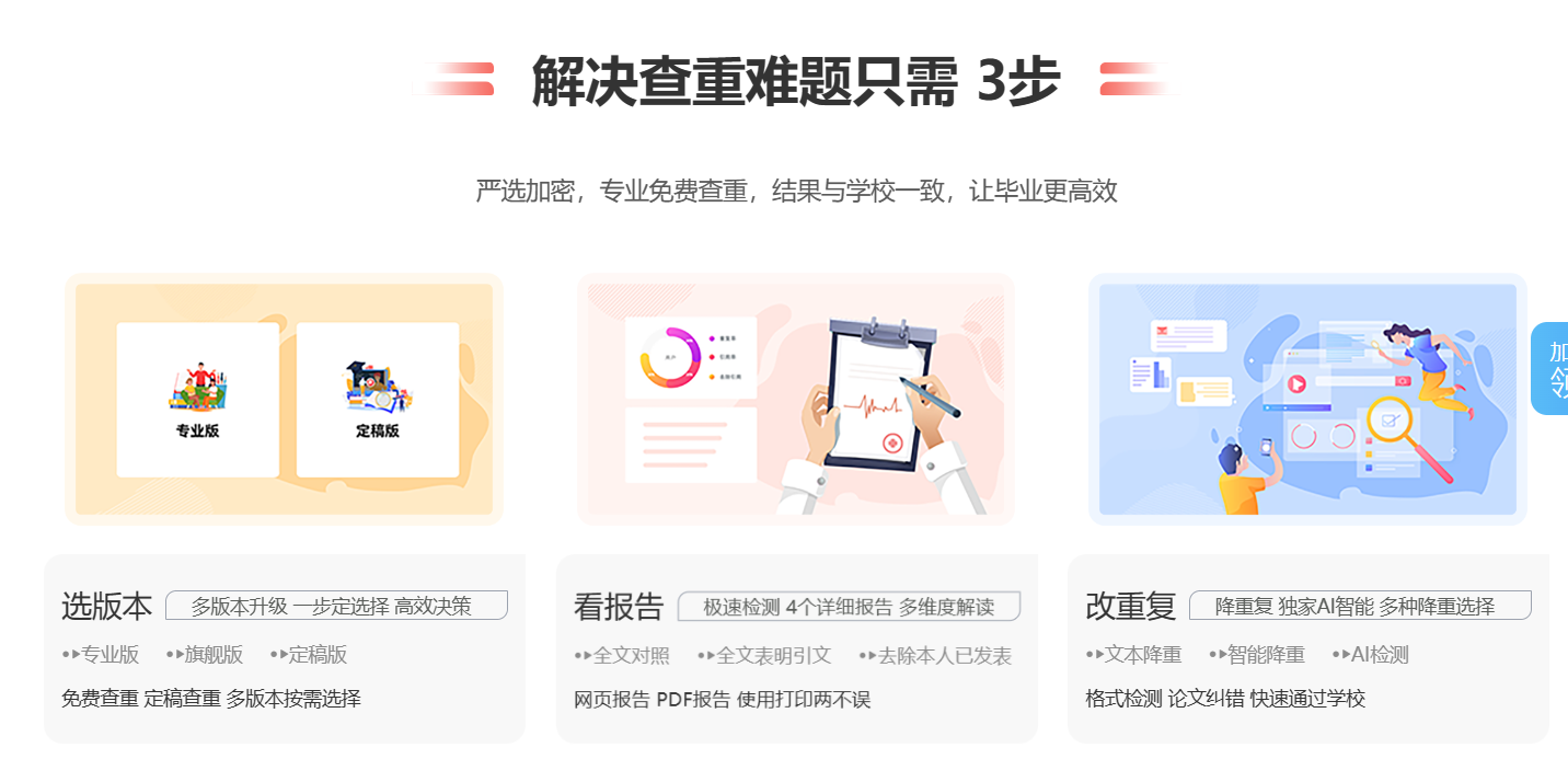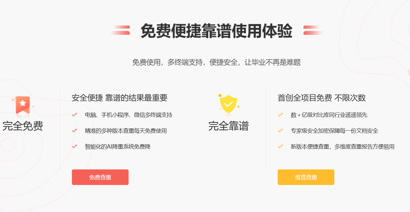 - 安全:采用多重加密升级,保护用户论文不被收录和泄露。