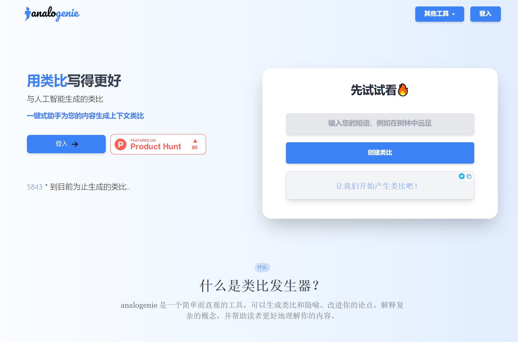 Analogenie是一个创新的工具,旨在帮助用户编写具有吸引力的类比和隐喻,以增强内容的表达力和观众的共鸣。