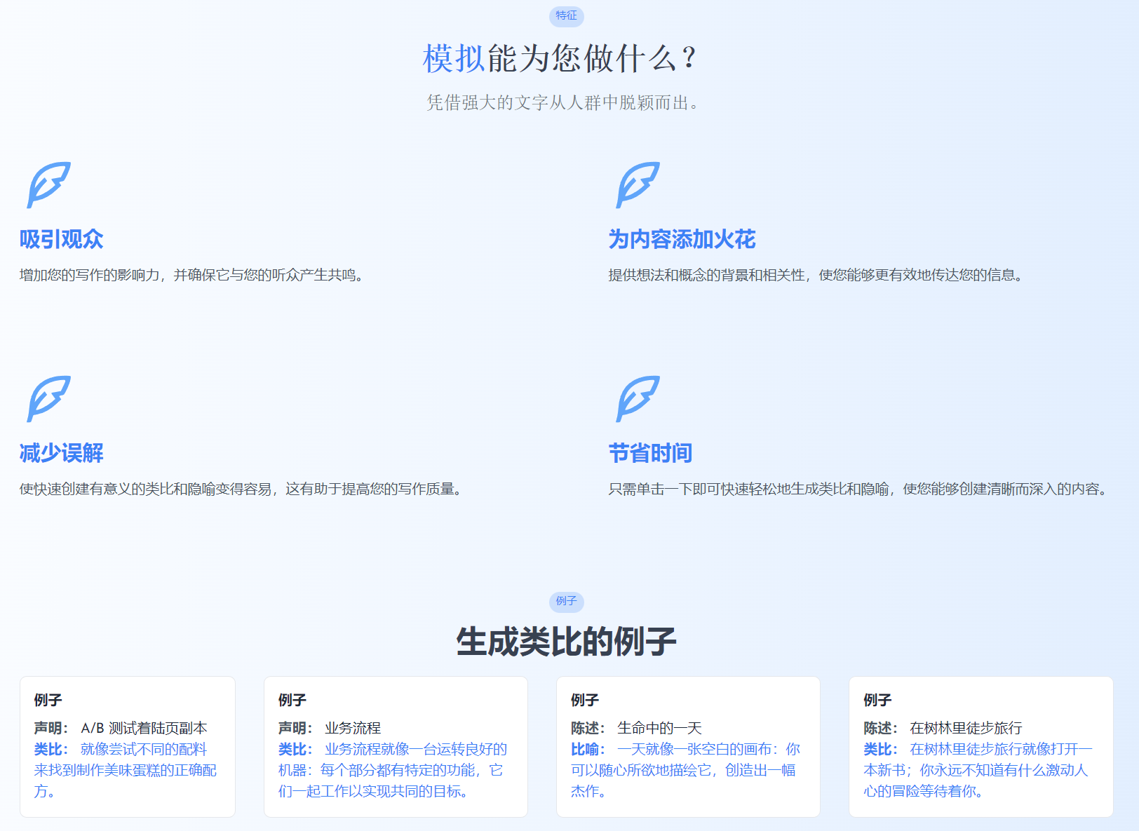 - 广告文案:广告创作者使用Analogenie来创造引人注目的类比,吸引潜在客户。
